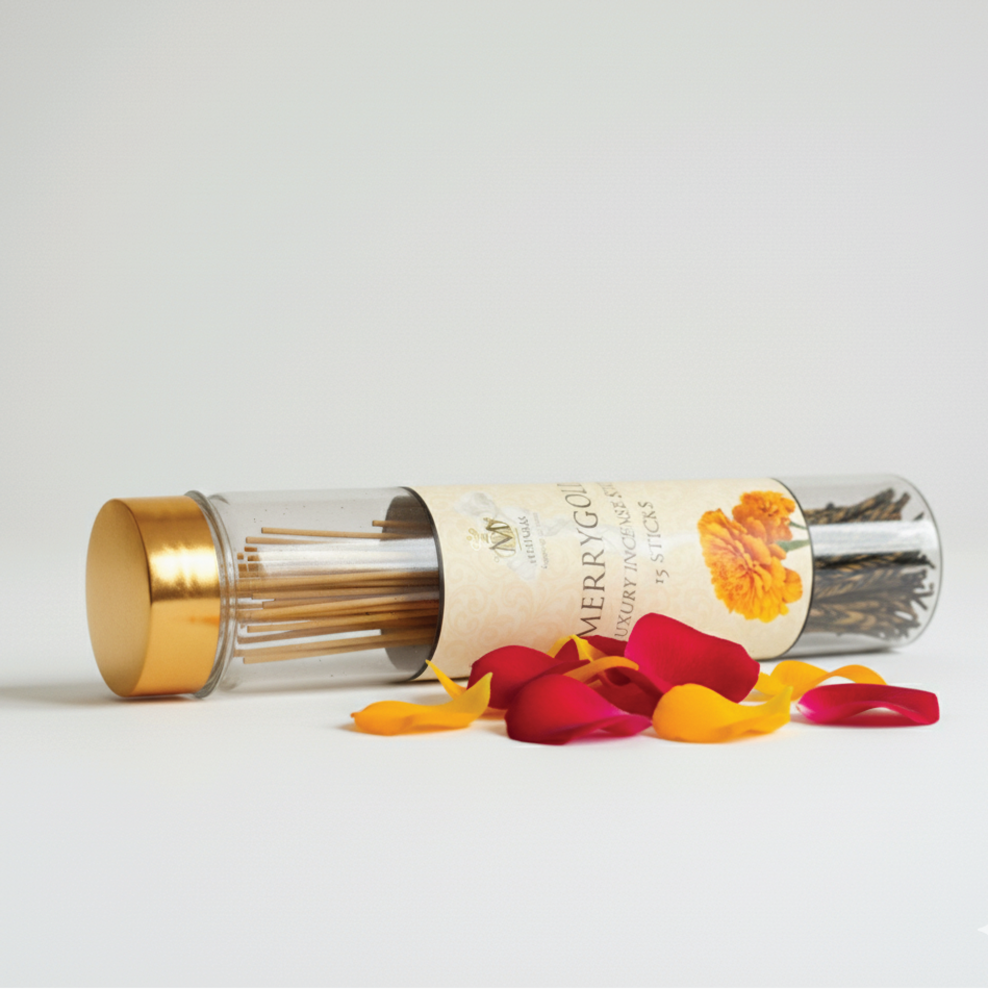 Merry gold Incense Sticks have a fragrance is rich and aromatic with warm undertones of floral amber and wood